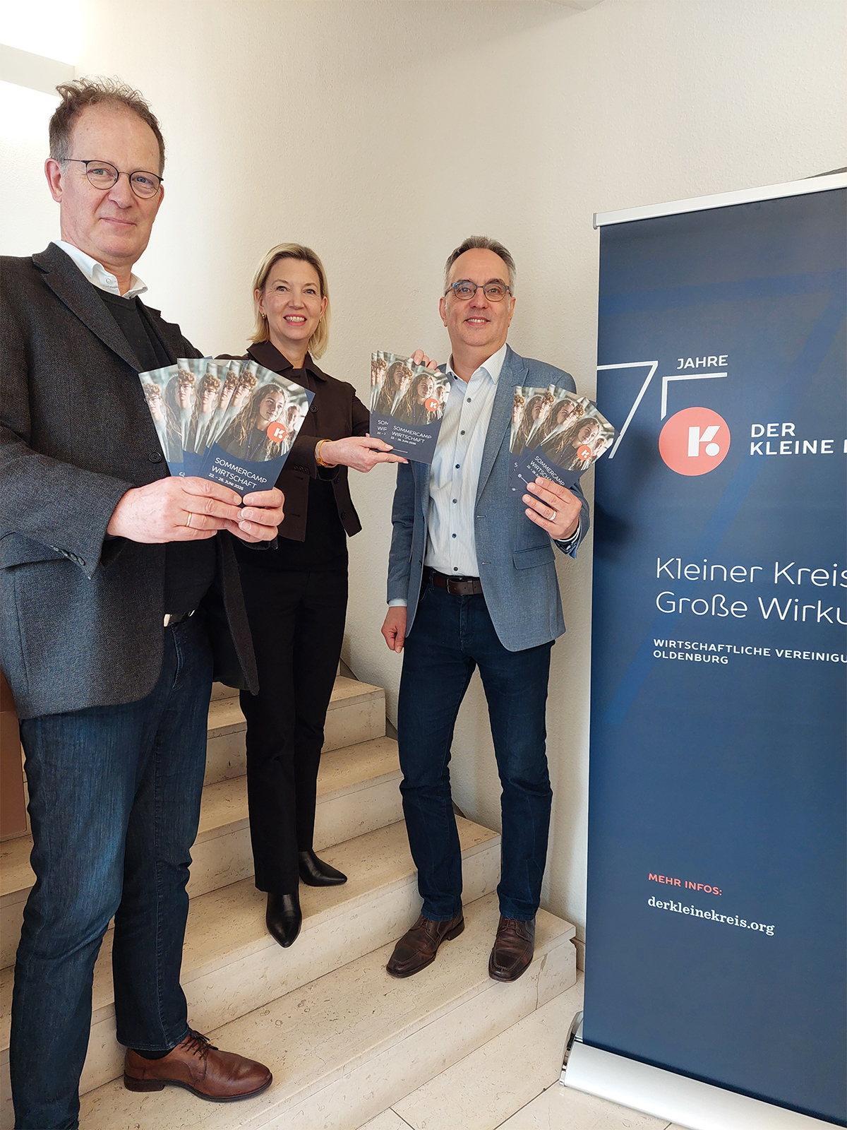 Bereits zum fünften Mal führt die Wirtschaftliche Vereinigung Oldenburg – DER KLEINE KREIS e. V. in Zusammenarbeit mit dem IÖB vom 22. bis 26. Juni 2026 das „Sommercamp Wirtschaft“ durch. Die jugendlichen Teilnehmer*innen erhalten tiefe Einblicke in prominente regionale Unternehmen unterschiedlicher Branchen und können sich direkt mit Unternehmensleitungen und -gründer*innen austauschen.