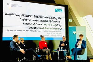 Ausgehend von einer inspirierenden Keynote über das Projekt „The Waterworks of Money” von Prof. Dr. Martijn Jeroen van der Linden (The Hague University of Applied Sciences) wurde im Anschluss in einer Podiumsdiskussion erörtert, wie Finanzbildung in einer digital transformierten Finanzwelt neu gedacht werden kann. Es diskutierten Prof. Dr. Martijn Jeroen van der Linden, Elsa Egerer (Hochschule für Gesellschaftsgestaltung, Koblenz) Prof. Dr. Andreas Kerkemeyer und Prof. Dr. Dirk Loerwald unter der Moderation von Caroline Marburger (Zentrum verantwortungsbewusste Digitalisierung (ZEVEDI)).